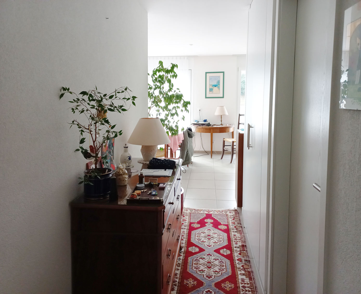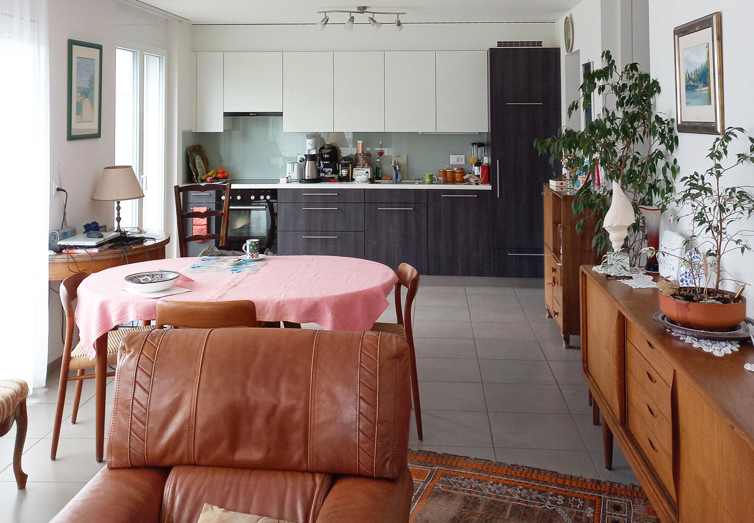 Le hall d’entrée laisse place à une pièce à vivre conviviale, ouverte sur la cuisine agencée, le coin à manger et le confortable séjour. Les grandes portes-fenêtres apportent une belle lumière naturelle. Cette espace jour se prolonge sur un balcon généreux accessible du séjour et de la cuisine. Un WC visiteurs est également disponible dans cette partie de la maison.